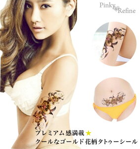 【ゆうパケット送料無料 】プレミアム感満載★クールなゴールド花柄タトゥーシール♪ クール華 ボディシール タトゥーシール 盛れる個性派 セクシー お洒落れ(入れ墨 ハロウィン コスプレ) 花魁