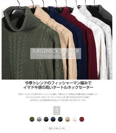 ケーブル編みタートルネックニットです。